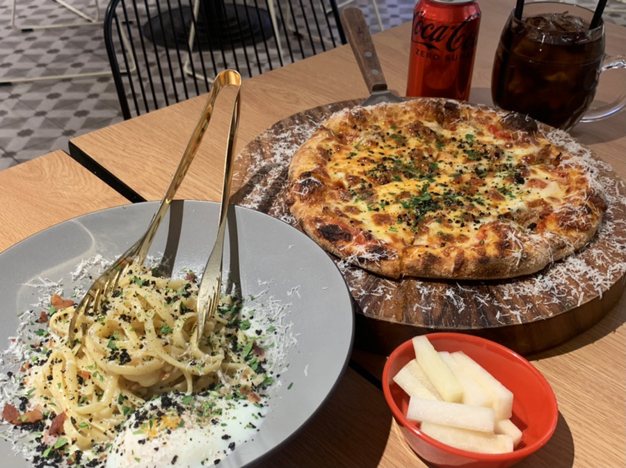 - 메뉴 : 비비큐 풀드포크 피자, 베이크드 머쉬룸 피자, 소년까르보나라 등