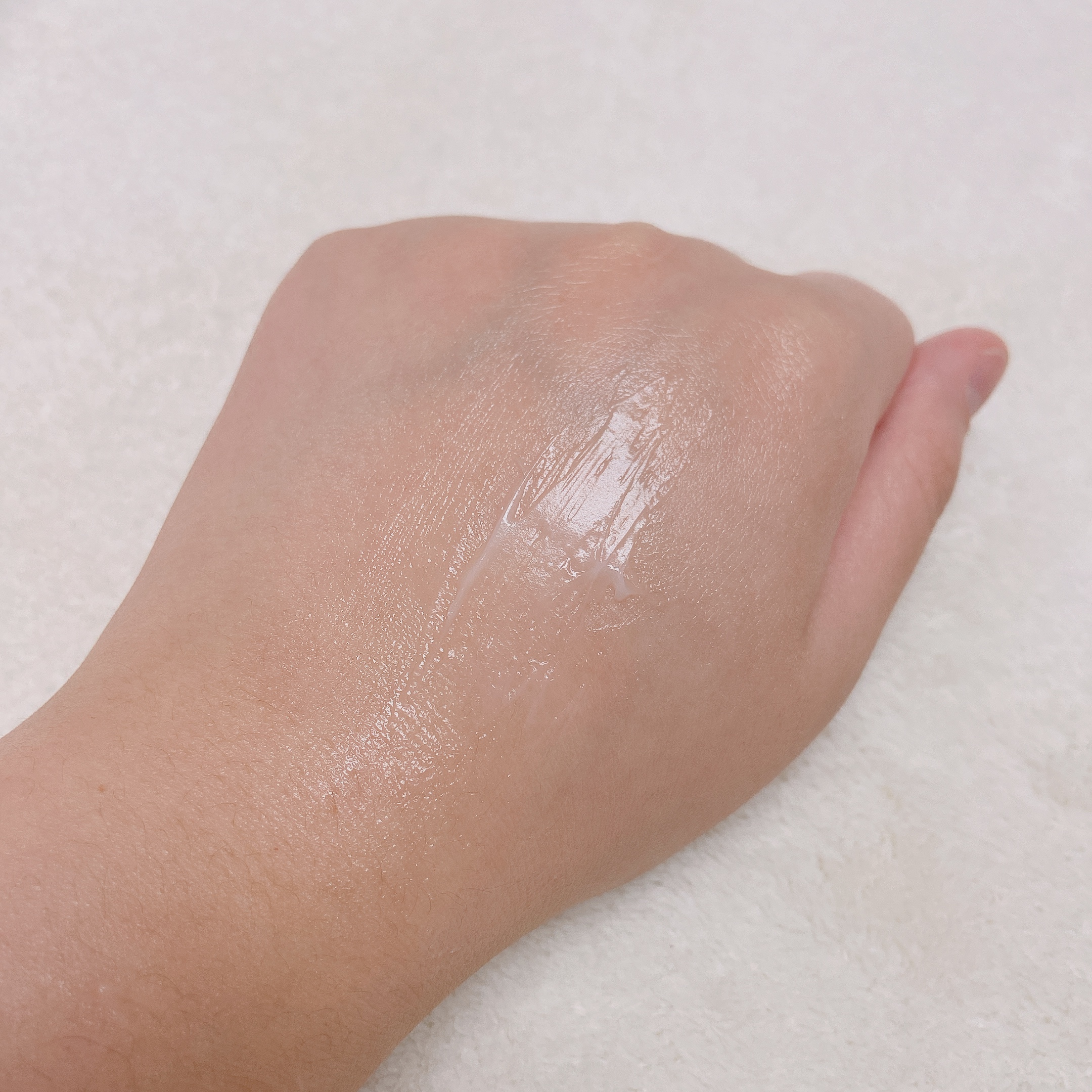 손등에 직접 펴서 발라보면 쓱-하고 발리는 느낌이고 느낌 자체가 부드러워요. 외관상으로 봤을땐 묽다고 생각할 수 있겠지만 실제로 발랐을땐 크림보단 가볍지만 스킨이나 로션에 비하면 묽지않아요.