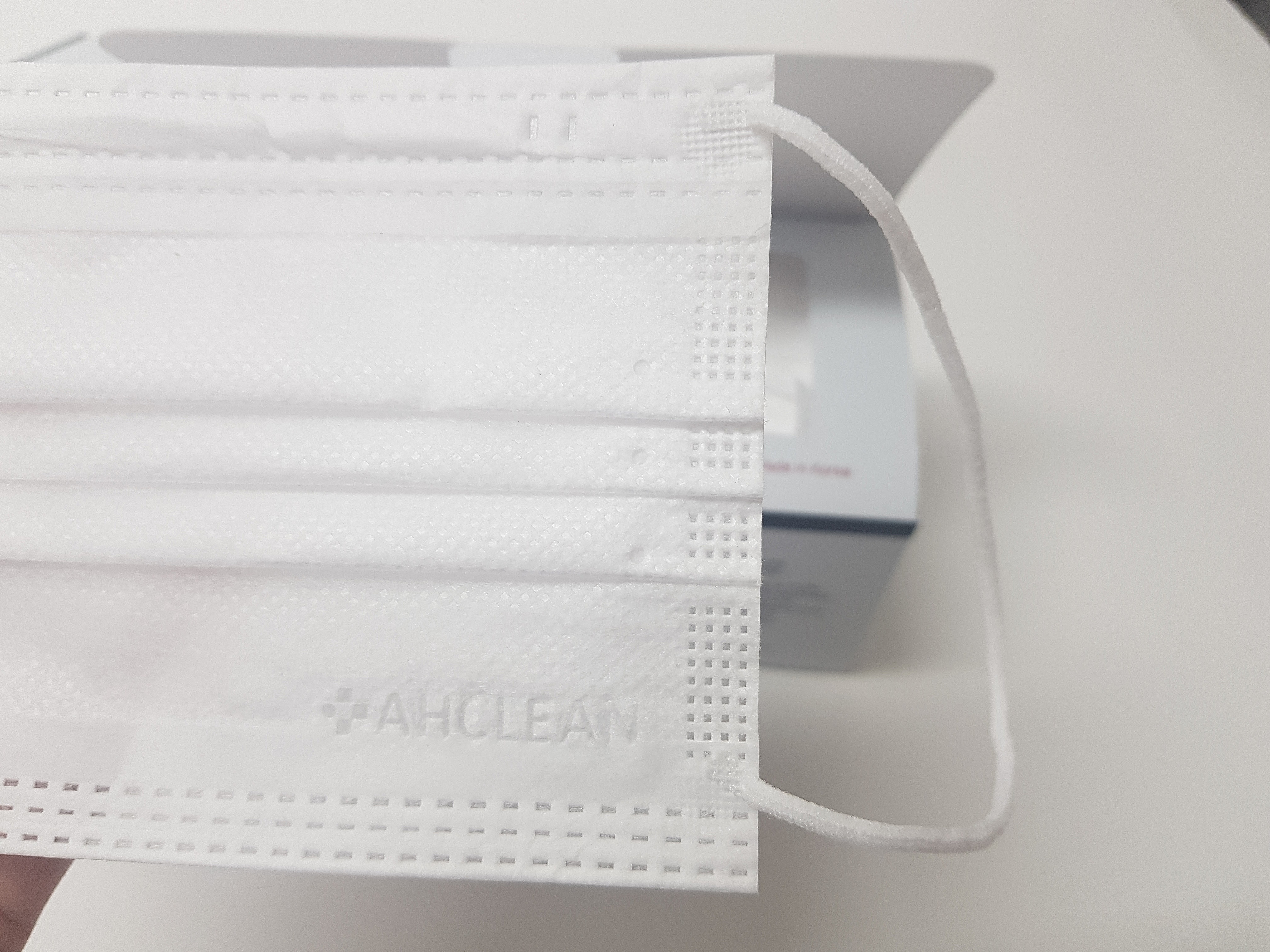 이 일회용마스크는 겉면에 로고가 박혀있어서