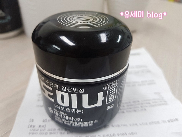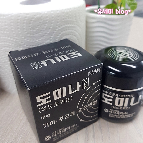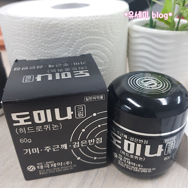 의약품으로 구분되어 약국에서만 구입가능한 히드로퀴논 4% 농도의 도미나크림과